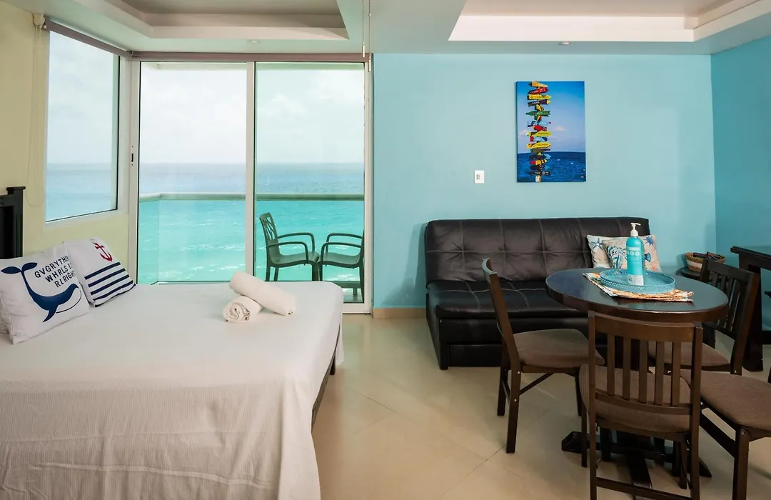 The beachfront 45 m² Ocean View In Hotel Complex - By Aloja Rv Cancun is located in Cancun, nearly a 10-minute ride from the Mayan Museum of Cancun, and boasts a Jacuzzi. Enjoy a walk around the long white - sand Playa Delfines Beach, in proximity to the 1-bedroom apartment.